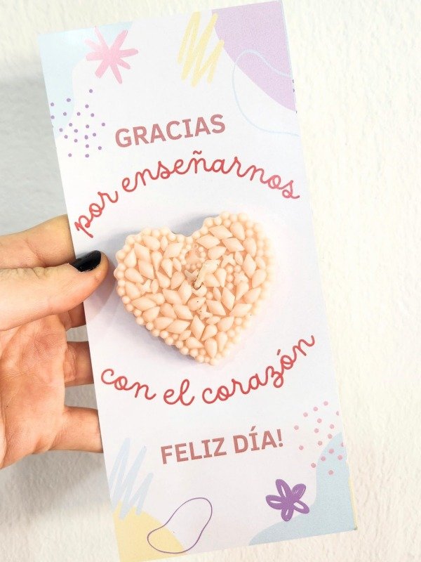 Vela corazón 6.5 cm $2300 Tarjetón 9.5 cm x 21 cm
