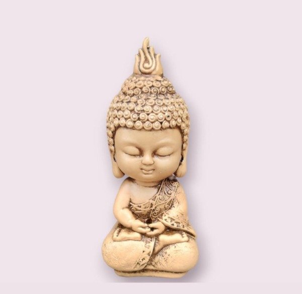 Porta Sahumerio Buda Loto 16cm de alto x 7cm de base en tonos Cobre, Oro y Plata.